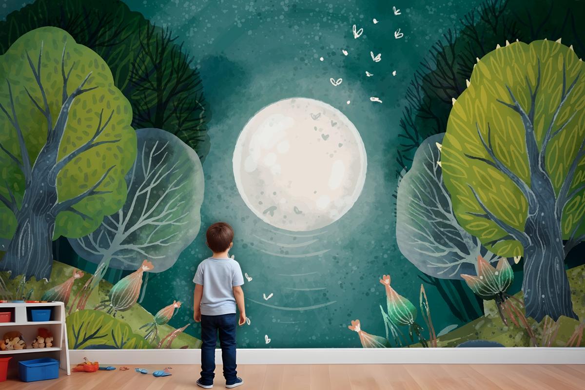 Suluboya Büyülü Orman Çocuk Odası Duvar Kağıdı