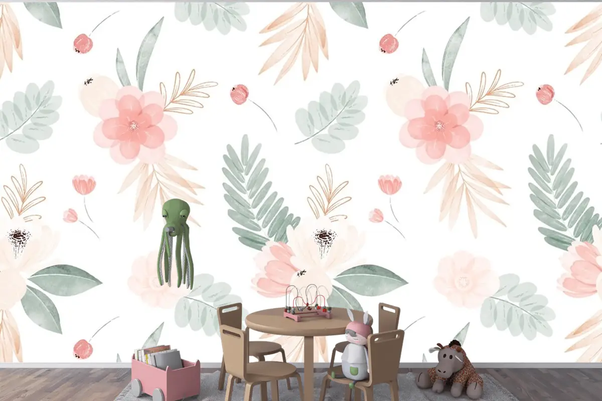 Suluboya Çiçek Çizim Arka Plan Çocuk Odası Duvar Kağıdı
