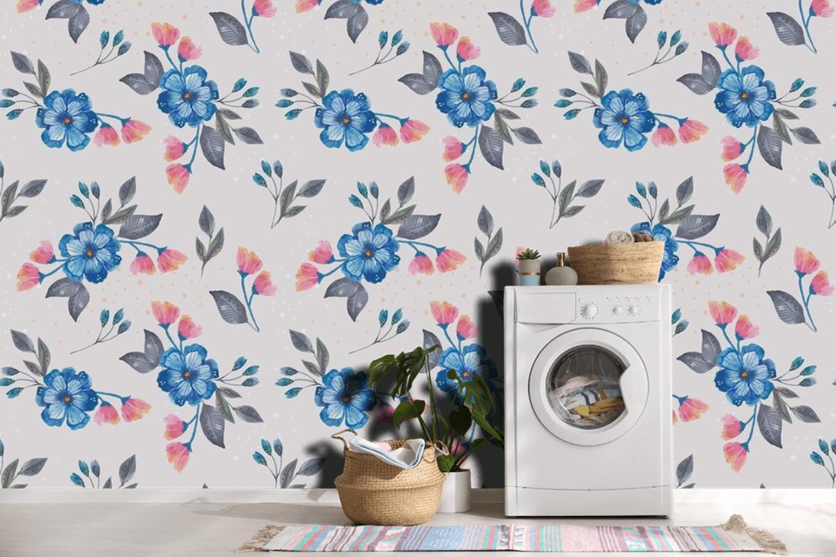 Suluboya Çiçek Desenli Tasarım Çamaşır Odası Duvar Kağıdı