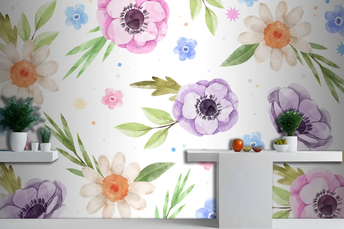 Suluboya Çiçek Mutfak Duvar Kağıdı