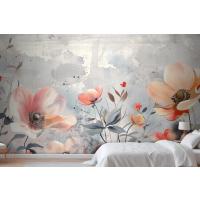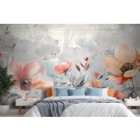 Suluboya Çiçekler Mavi Yatak Odası Duvar Kağıdı