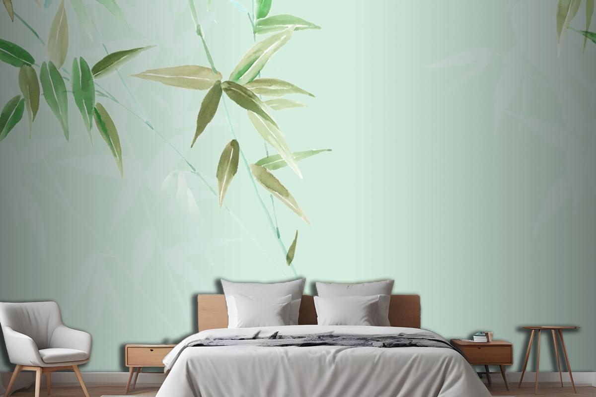 Suluboya Çiçekler Tavuskuşu Phoenix Gül Şakayık Hayvanlar Yatak Odası Duvar Kağıdı