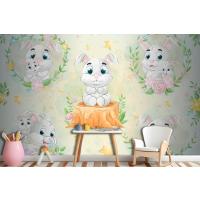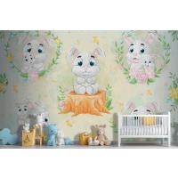 Suluboya Çocuk Odası Duvar Kağıdı Ile Sevimli Küçük Tavşan