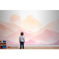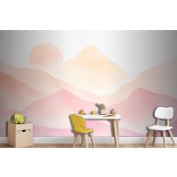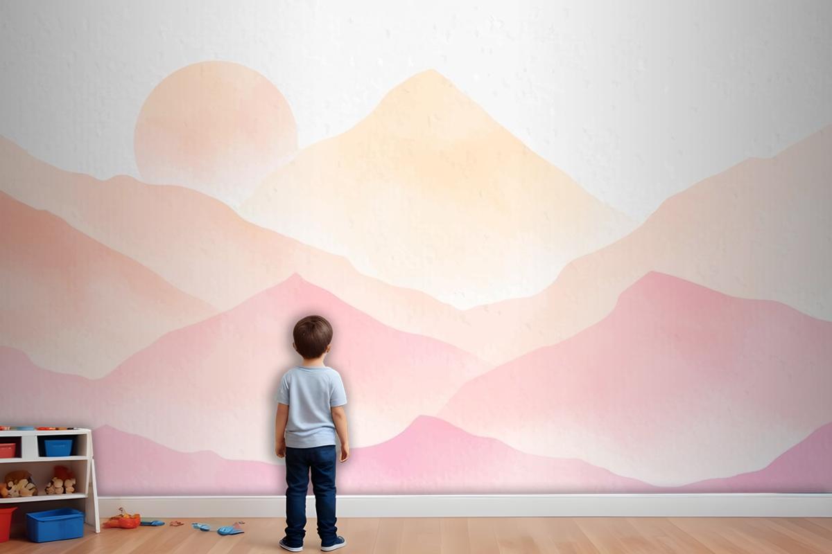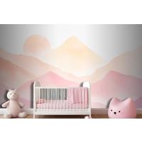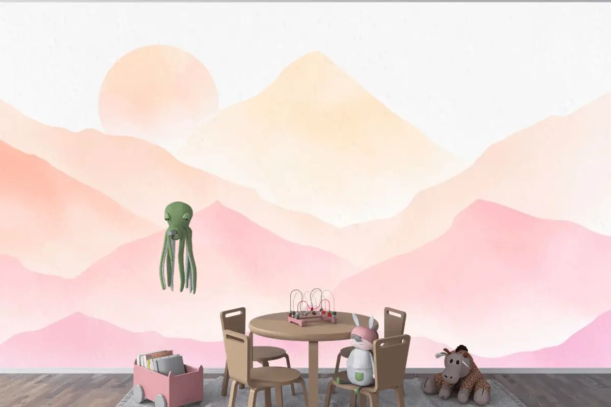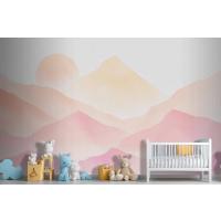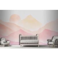 Suluboya Dağları Pembe Arka Plan Çocuk Odası Duvar Kağıdı