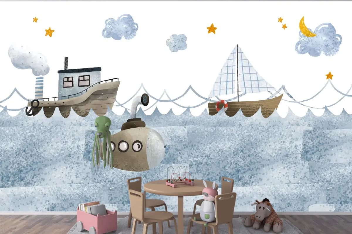 Suluboya Deniz Manzarası Çocuk Odası Duvar Kağıdı