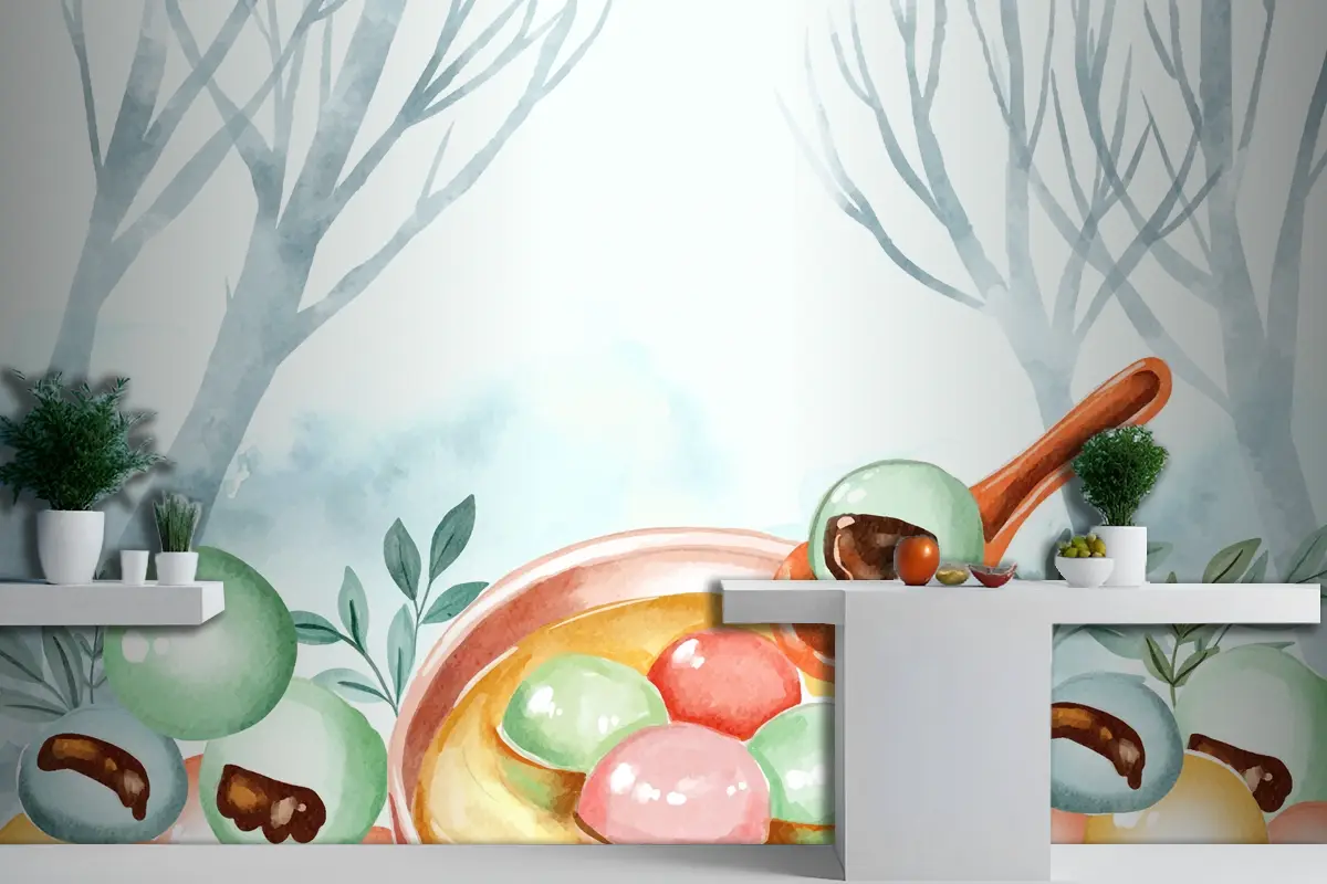 Suluboya Dongzhi Festivali Arka Plan Mutfak Duvar Kağıdı