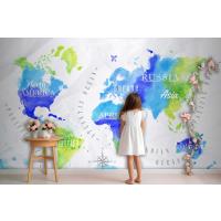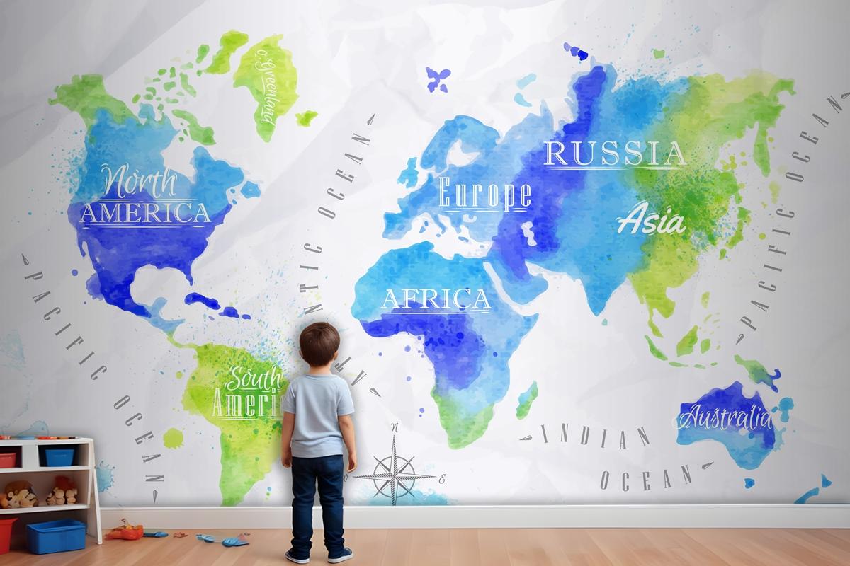 Suluboya Dünya Haritası Çocuk Odası Duvar Kağıdı