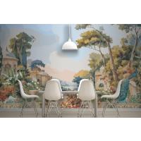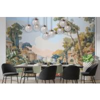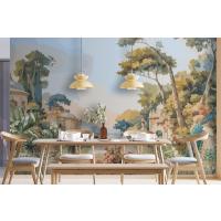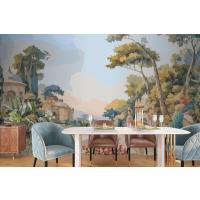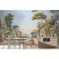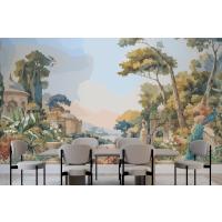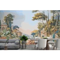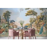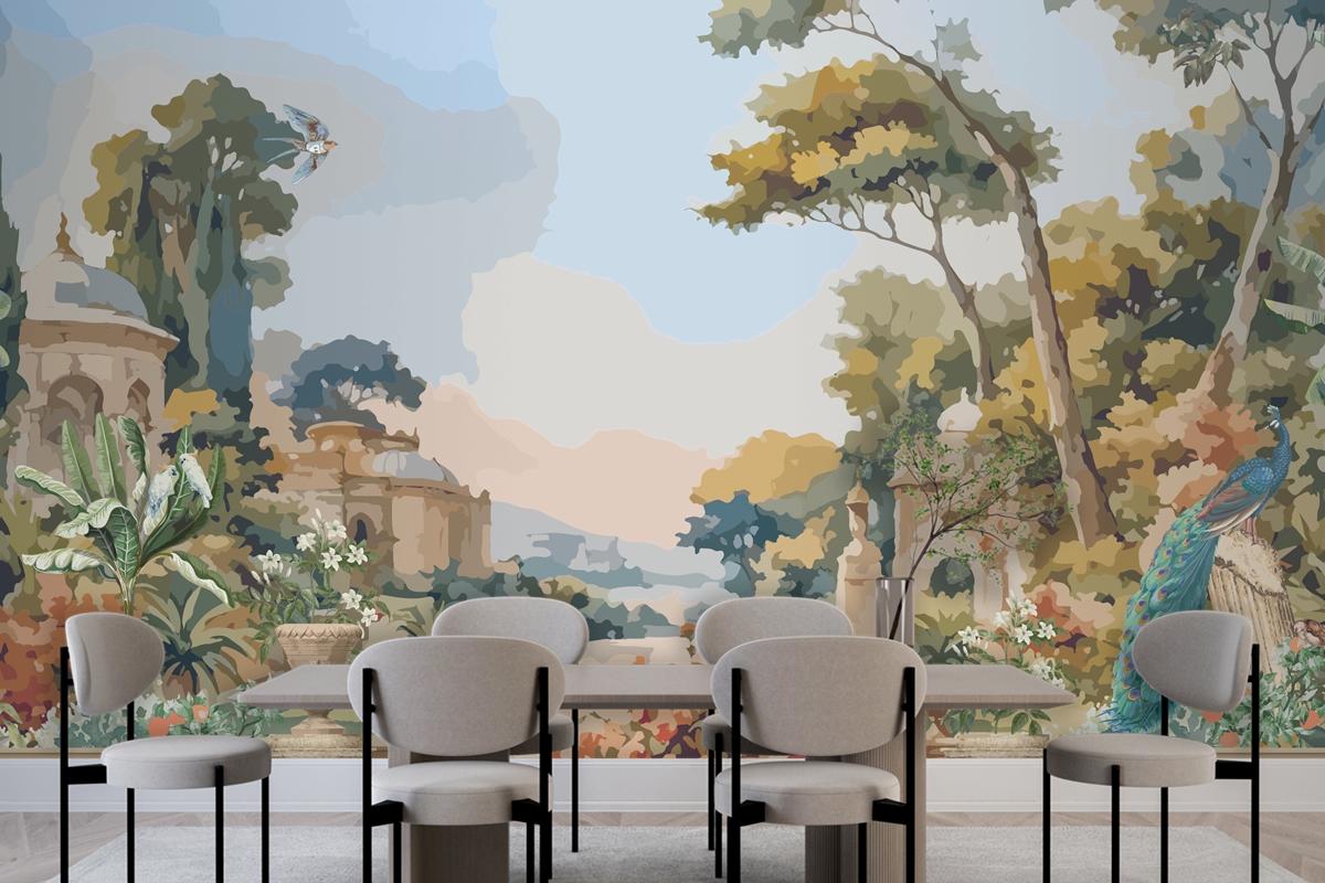 Suluboya Duvar Kağıdı Duvarında Tavus Kuşu Ve Akdeniz Mimarisi Ile Victoria Bahçesi