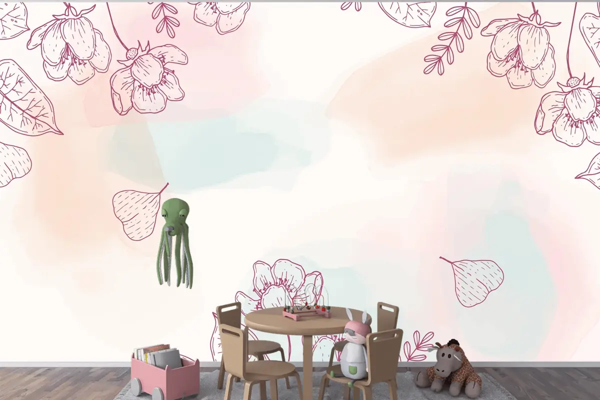 Suluboya Elle Çizilmiş Arka Plan Çocuk Odası Duvar Kağıdı