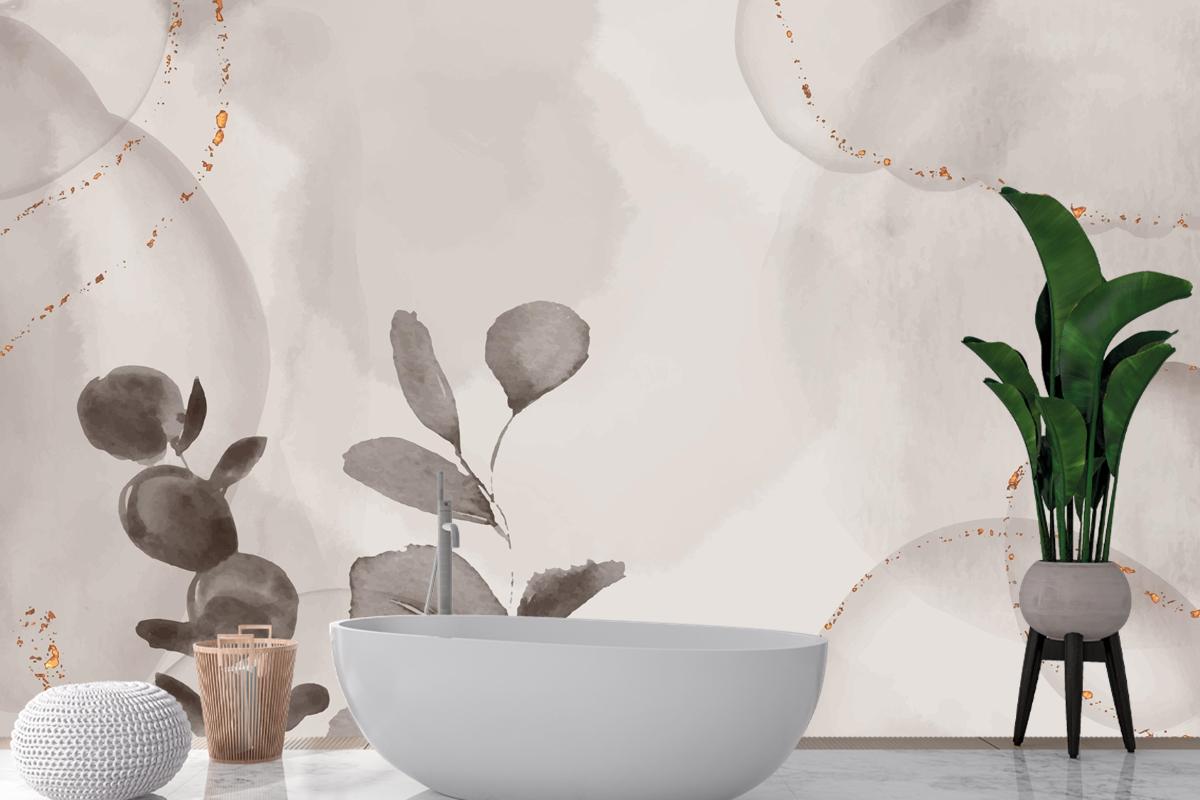 Suluboya Elle Çizilmiş Arka Plan Yaprakları Banyo Duvar Kağıdı