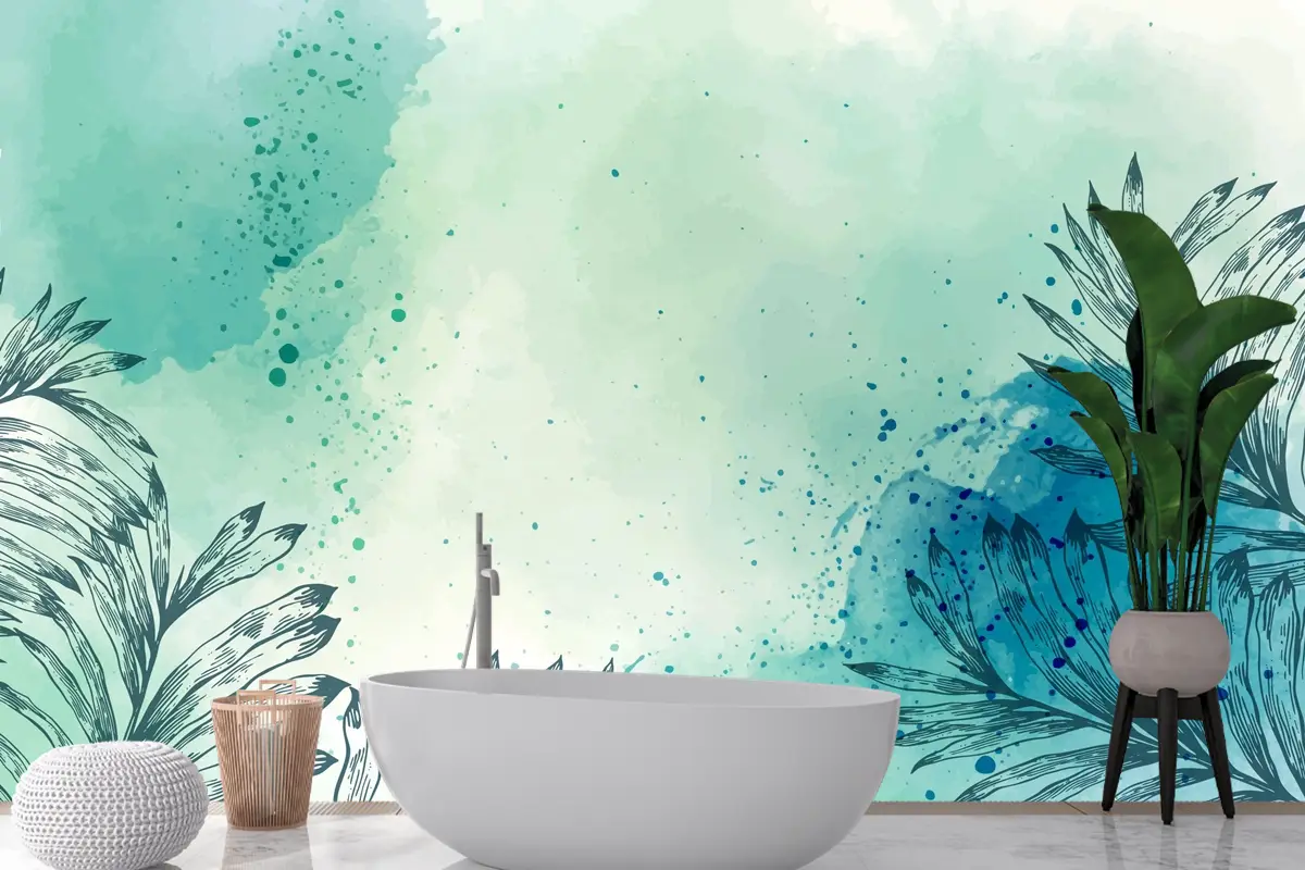 Suluboya Elle Çizilmiş Banyo Duvar Kağıdı