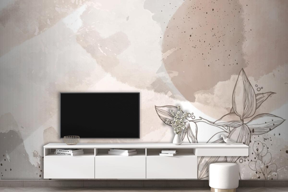 Suluboya Elle Çizilmiş Çiçekler Oturma Odası Duvar Kağıdı