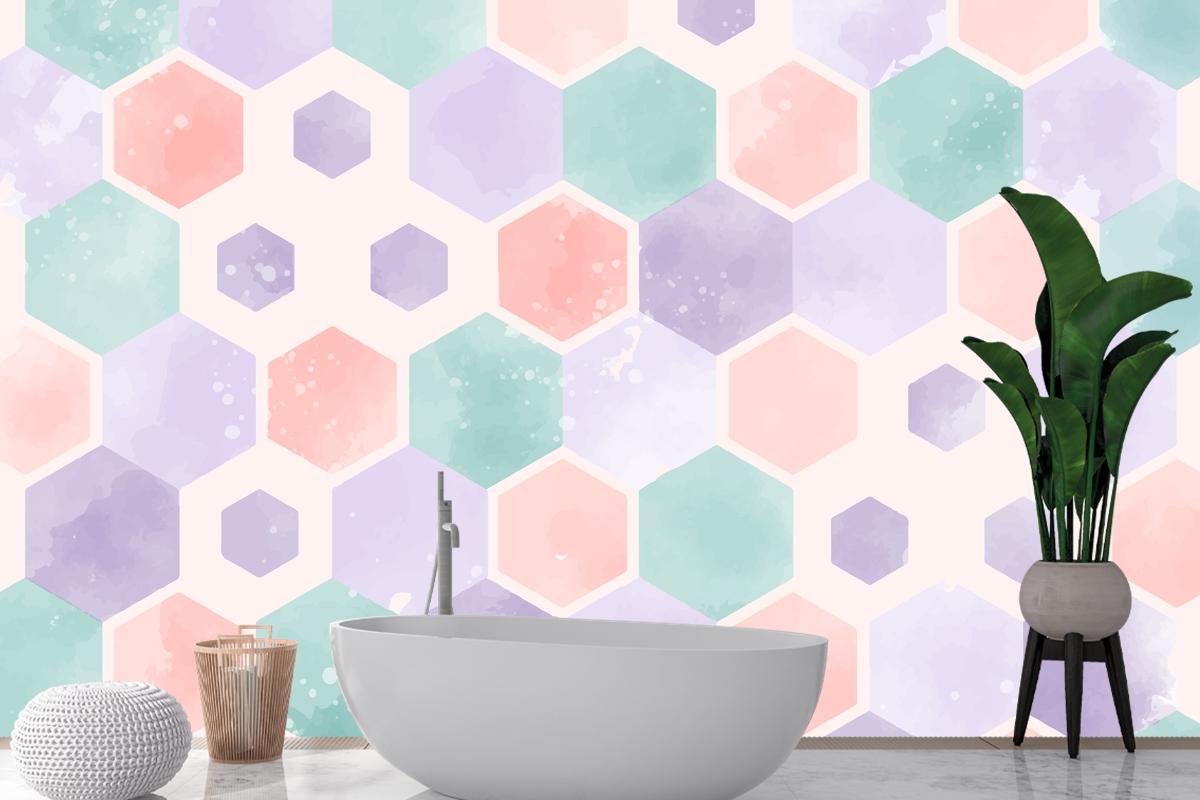 Suluboya Geometrik Banyo Duvar Kağıdı