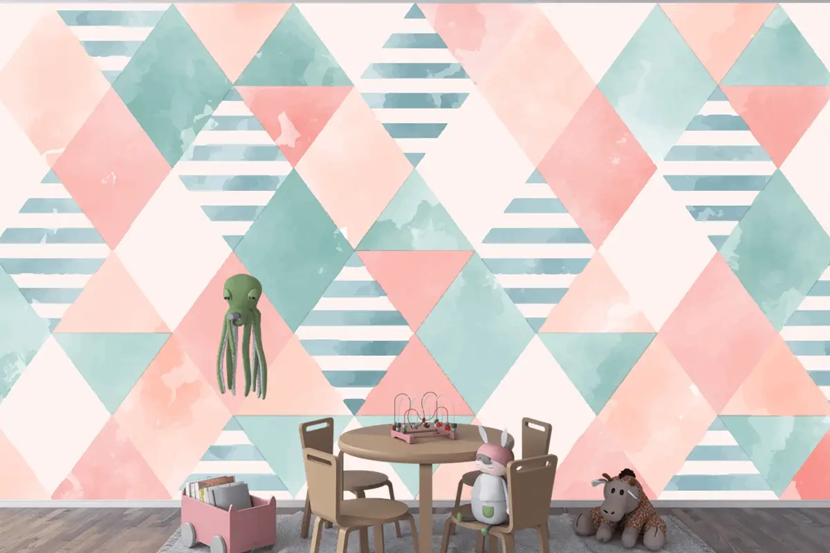 Suluboya Geometrik Çocuk Odası Duvar Kağıdı