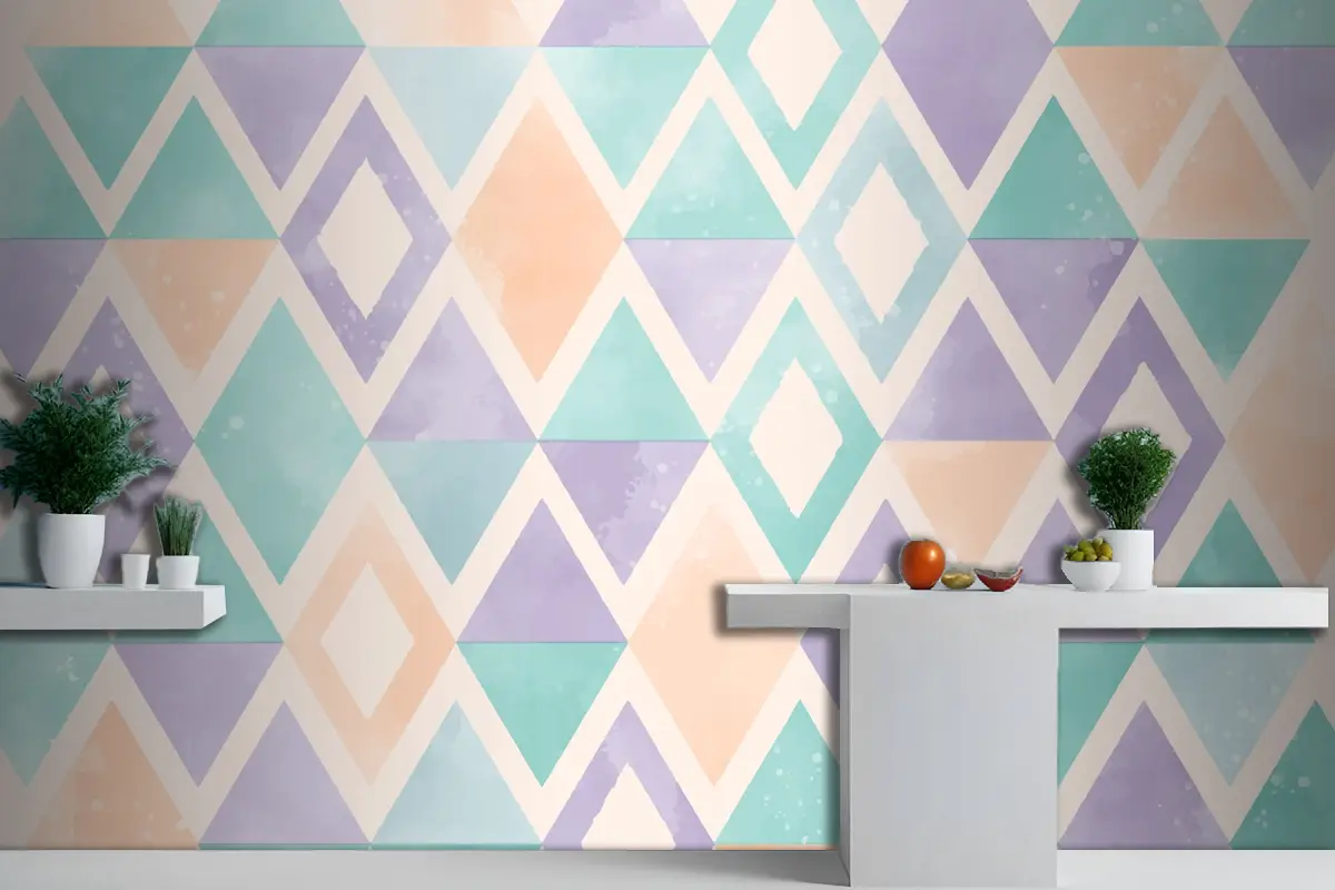 Suluboya Geometrik Mutfak Duvar Kağıdı