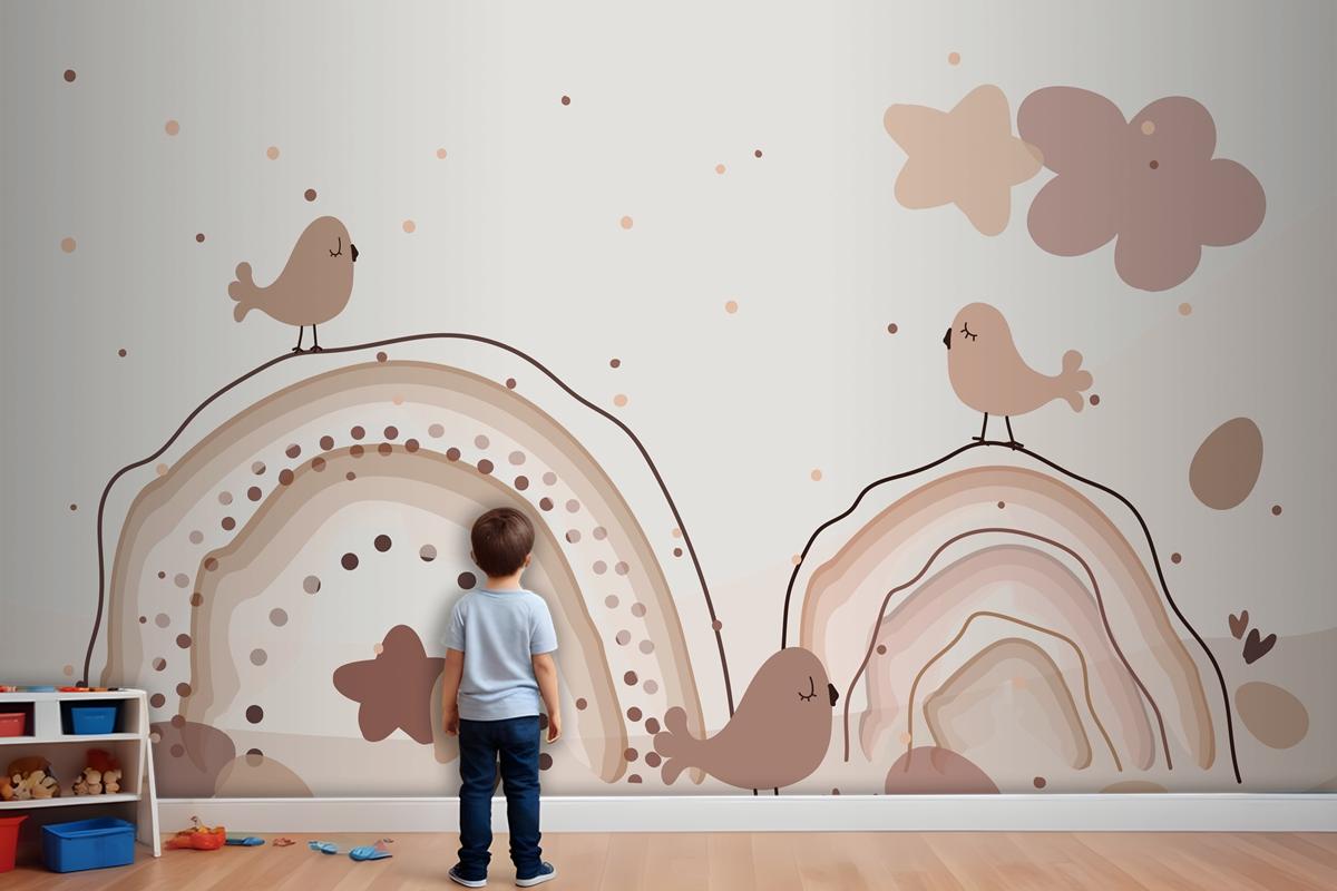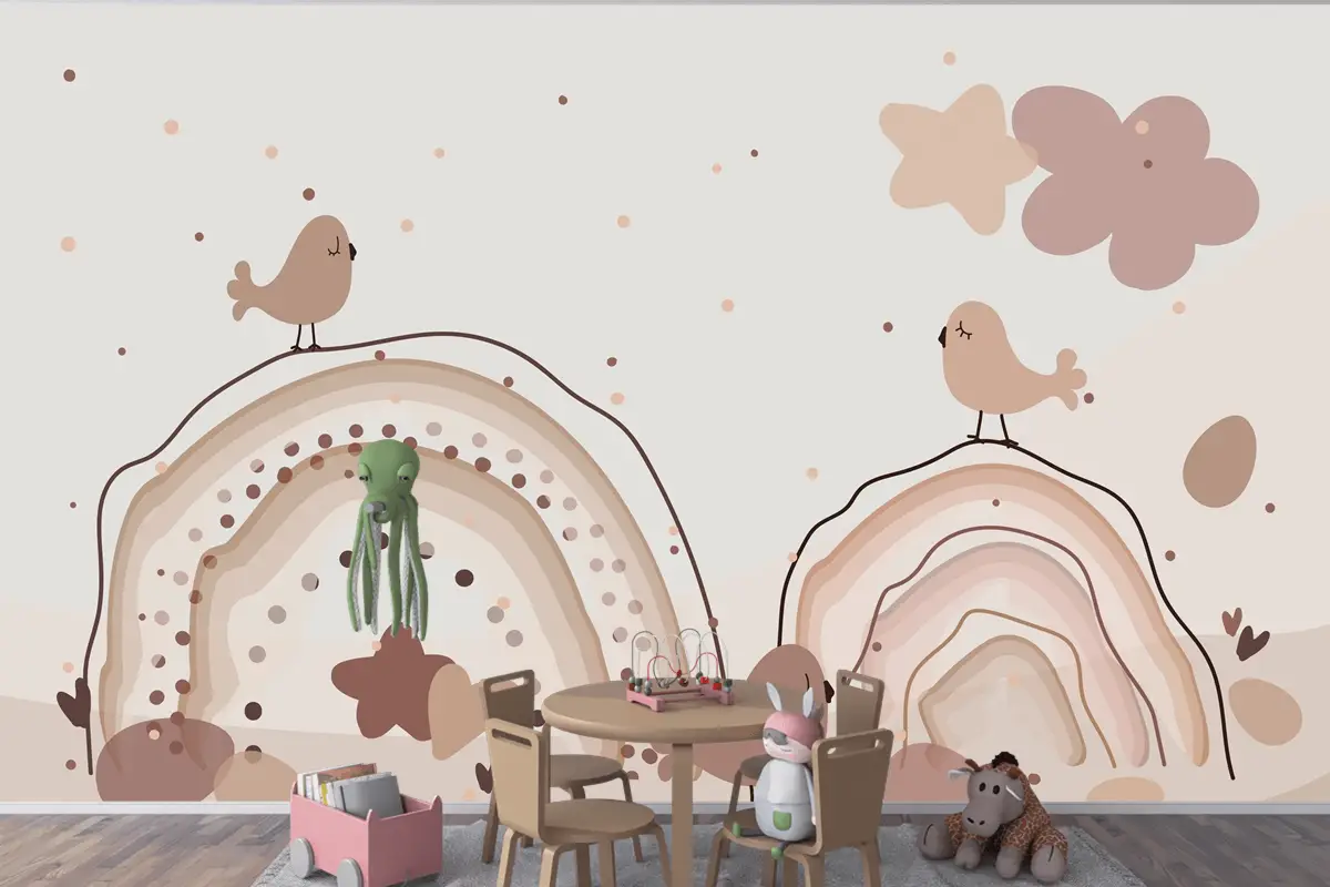 Suluboya Gökkuşağı Mutlu Paskalya Bej Çocuk Odası Duvar Kağıdı