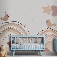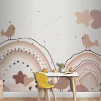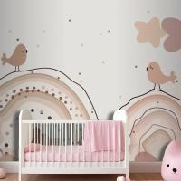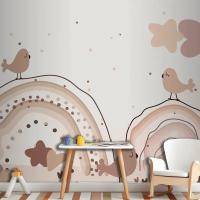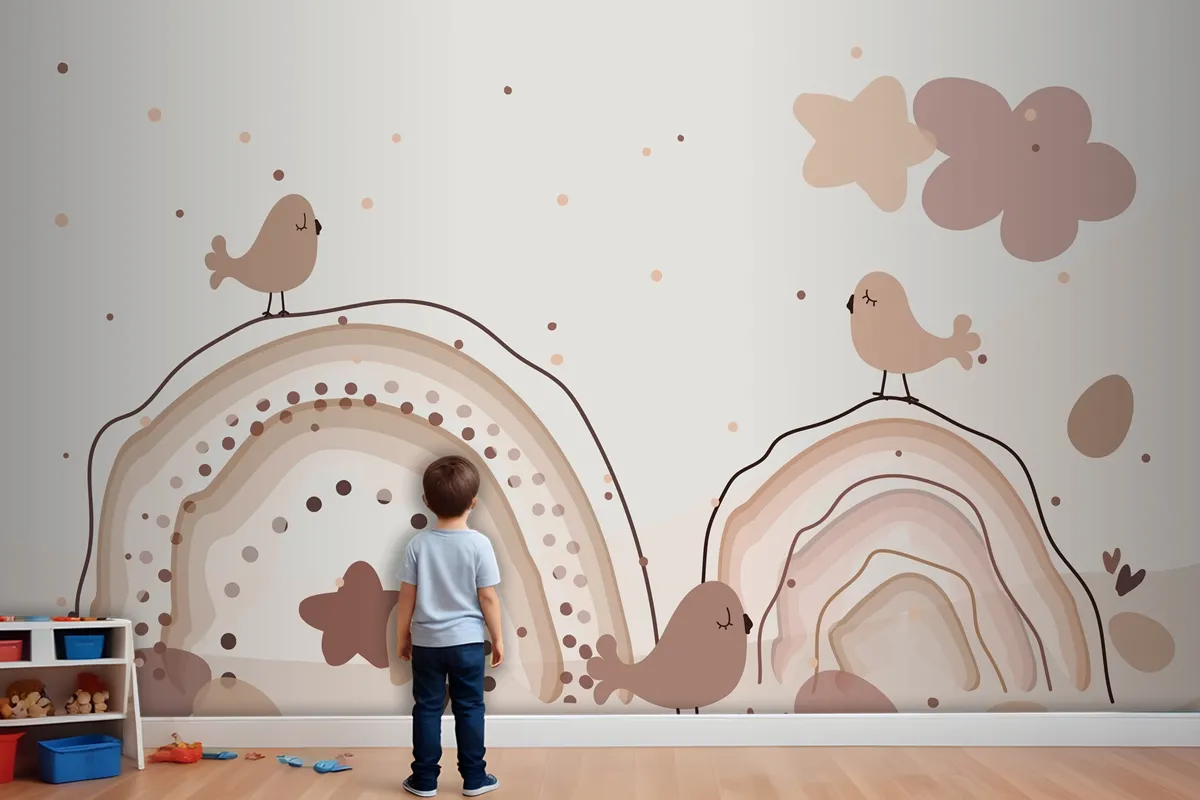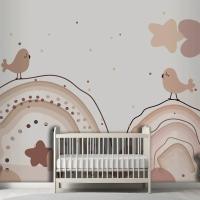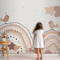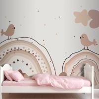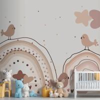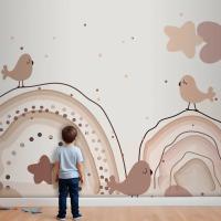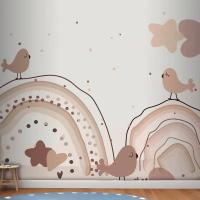 Suluboya Gökkuşağı Mutlu Paskalya Bej Çocuk Odası Duvar Kağıdı