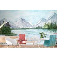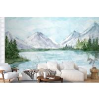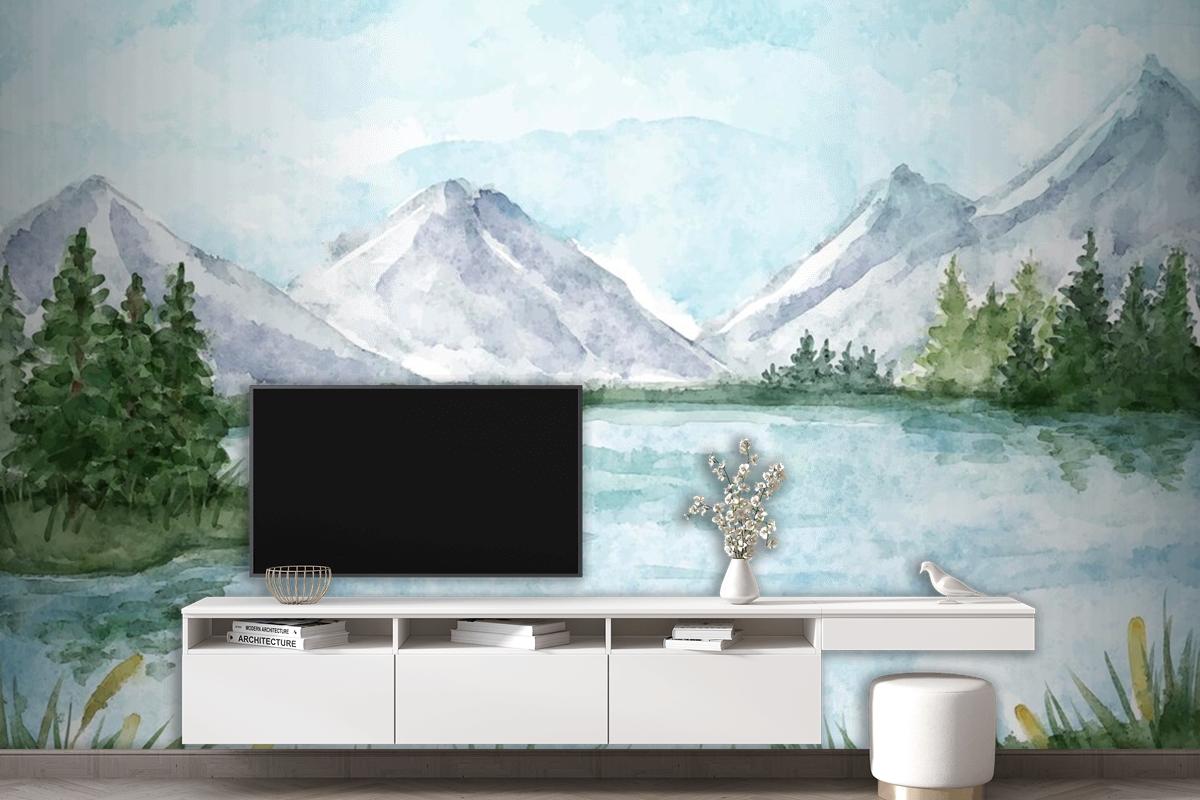 Suluboya Göl Manzarası Oturma Odası Duvar Kağıdı