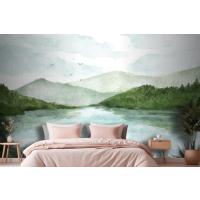 Suluboya Göl Manzarası Yatak Odası Duvar Kağıdı