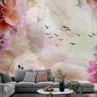 Suluboya Gölde Kuğu Ve Çiçek 3D Duvar Kağıdı