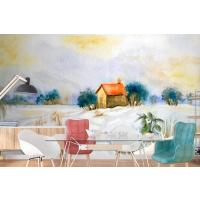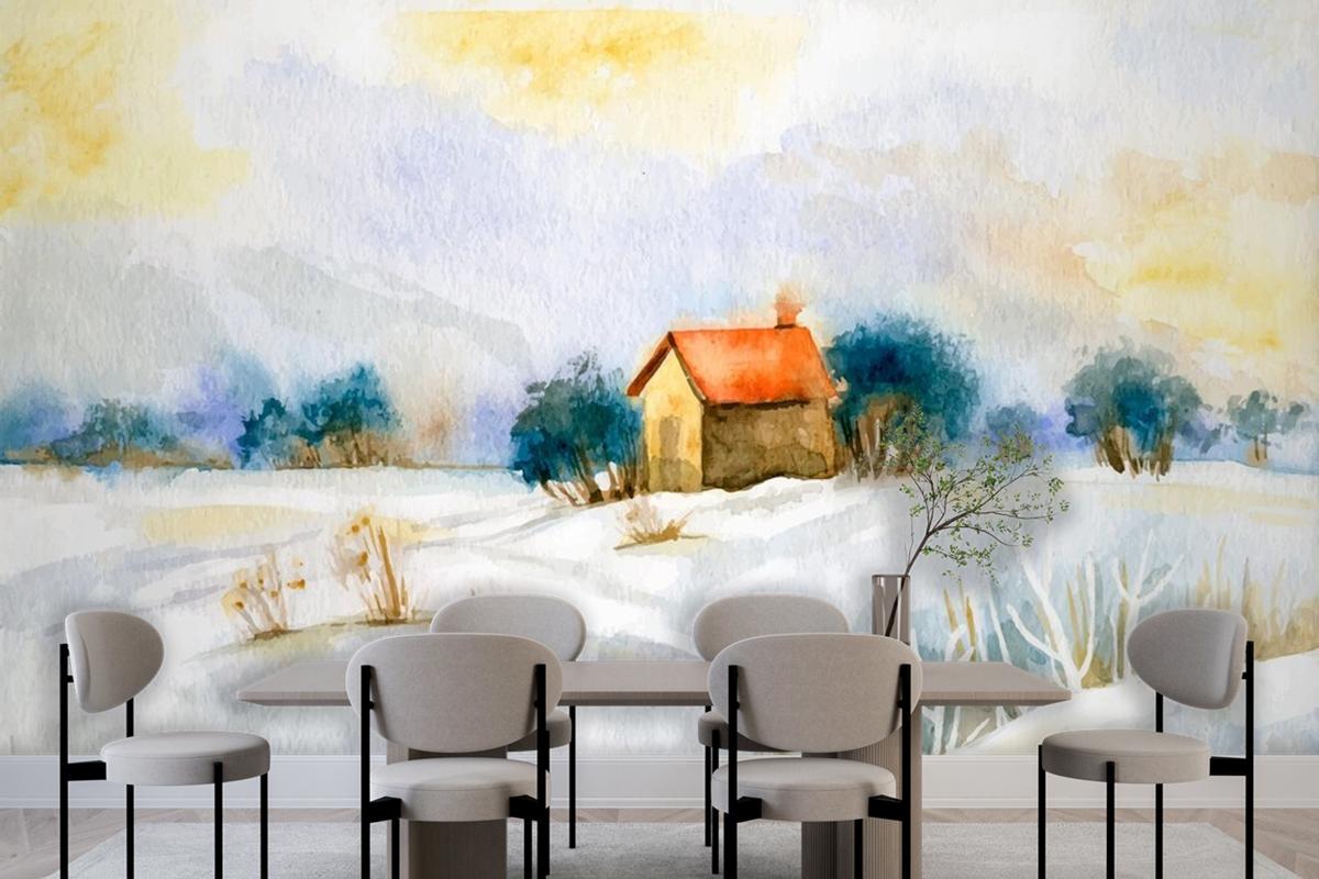 • Suluboya Kış Manzarası Yemek Odası Duvar Kağıdı