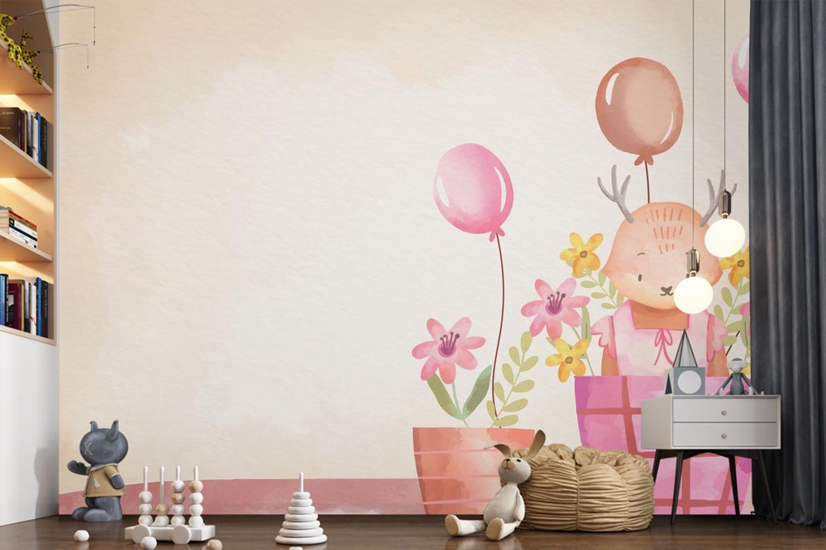 Suluboya Kız Bebek Arka Plan Çocuk Odası Duvar Kağıdı