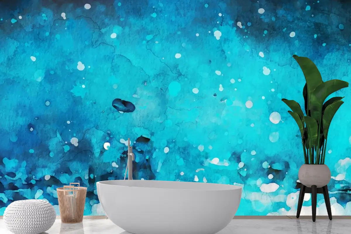Suluboya Mavi Boya Kontur Doku Banyo Duvar Kağıdı