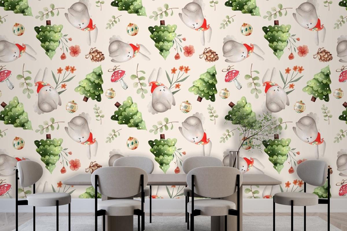 Suluboya Noel Desen Tasarım Yemek Odası Duvar Kağıdı
