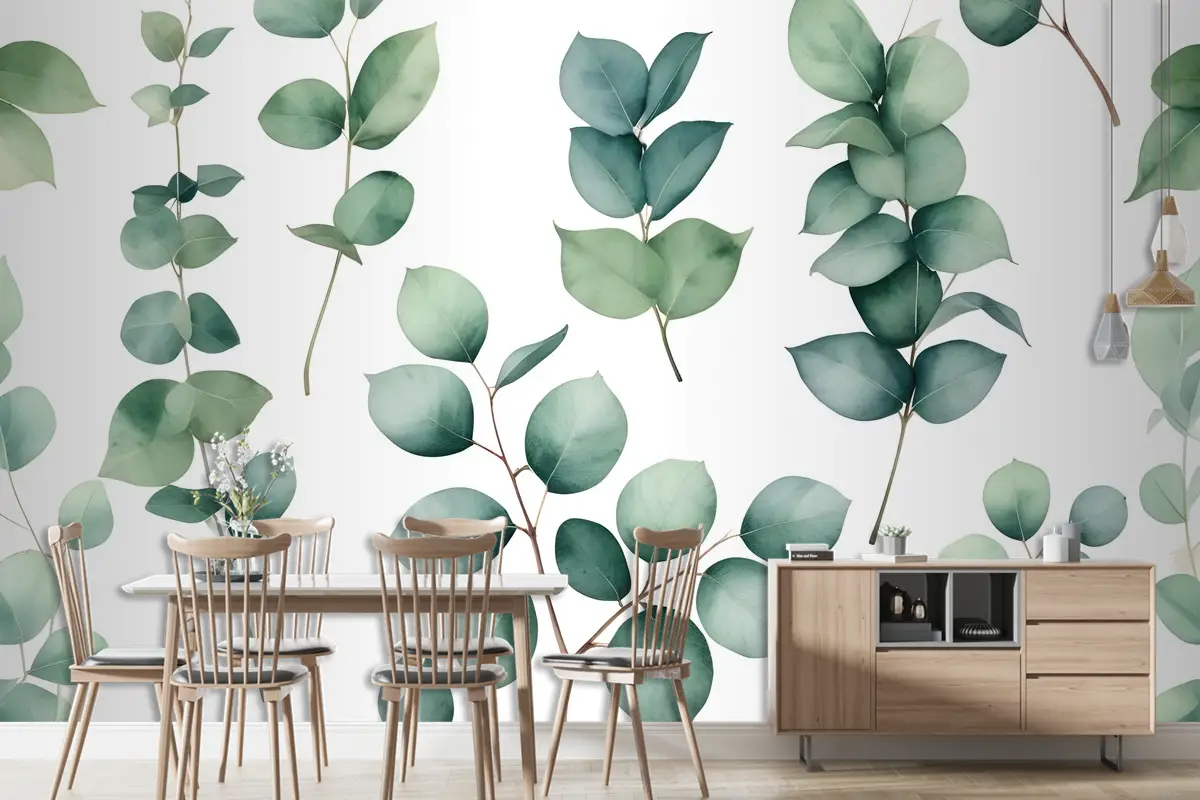Suluboya Okaliptüs Yaprağı Duvar Kağıdı