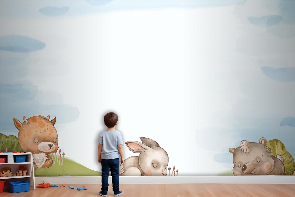 Suluboya Orman Hayvanları Arka Plan Çocuk Odası Duvar Kağıdı