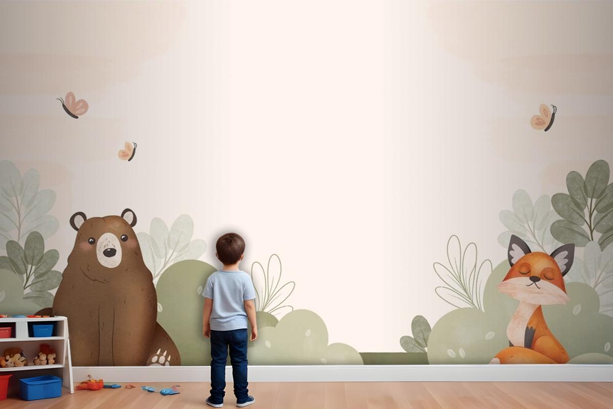 Suluboya Orman Hayvanları Çocuk Odası Duvar Kağıdı