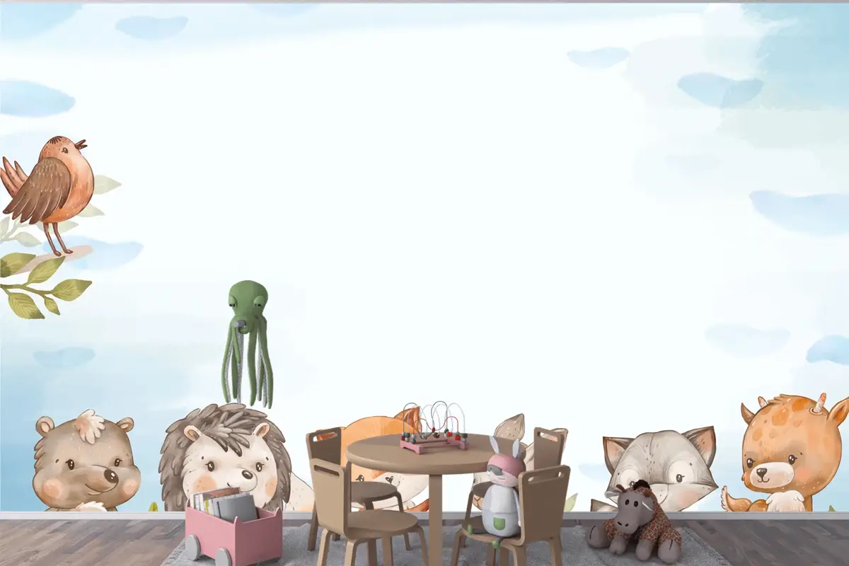 Suluboya Orman Hayvanları Çocuk Odası Duvar Kağıdı