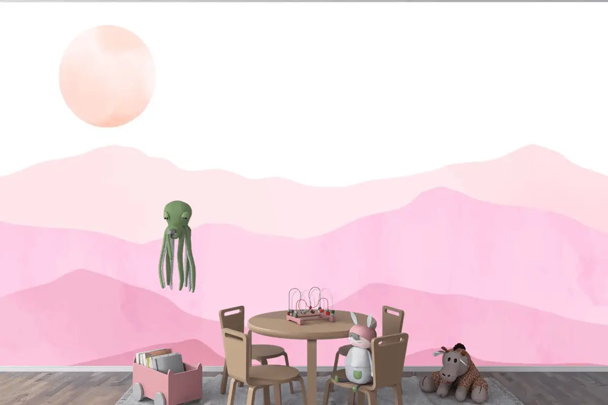 Suluboya Pastel Dağlar Arka Plan Çocuk Odası Duvar Kağıdı