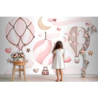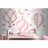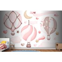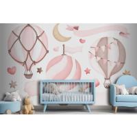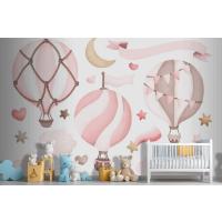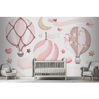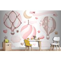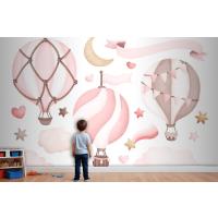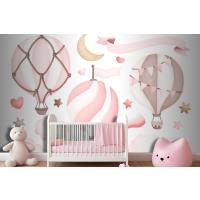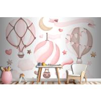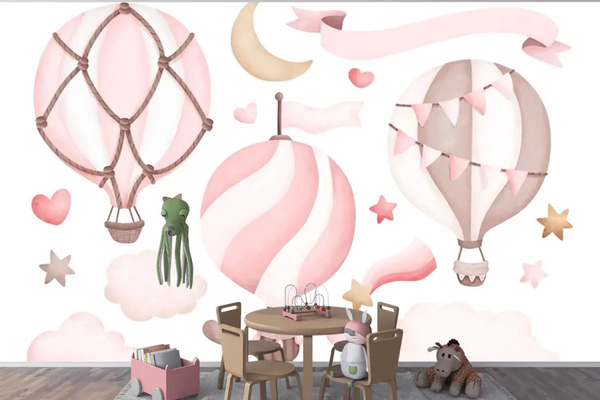 Suluboya Pembe Sıcak Hava Balonu Çocuk Odası Duvar Kağıdı