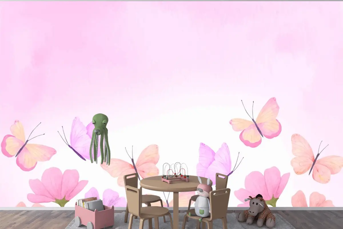 Suluboya Renkli Kelebek Arka Plan Çocuklar Çocuk Odası Duvar Kağıdı Duvar