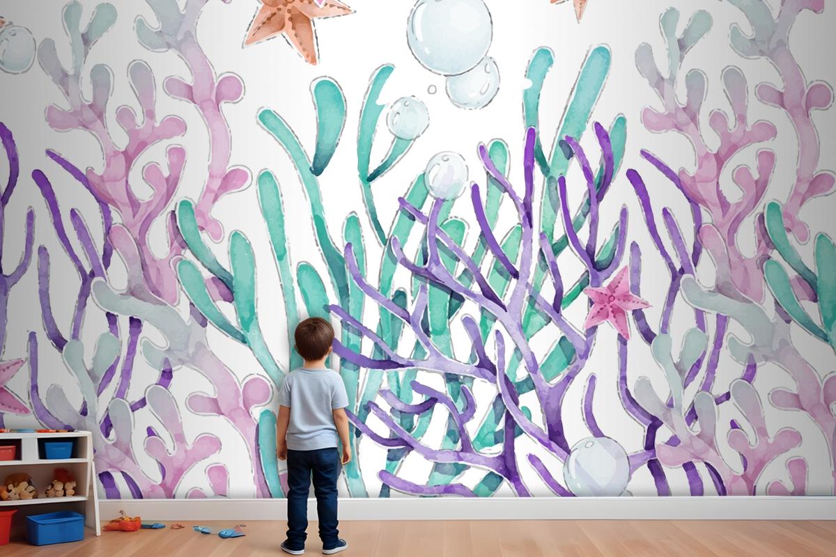 Suluboya Renkli Mercan Arka Plan Çocuk Odası Duvar Kağıdı