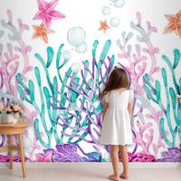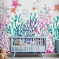 Suluboya Renkli Mercan Arka Plan Çocuk Odası Duvar Kağıdı