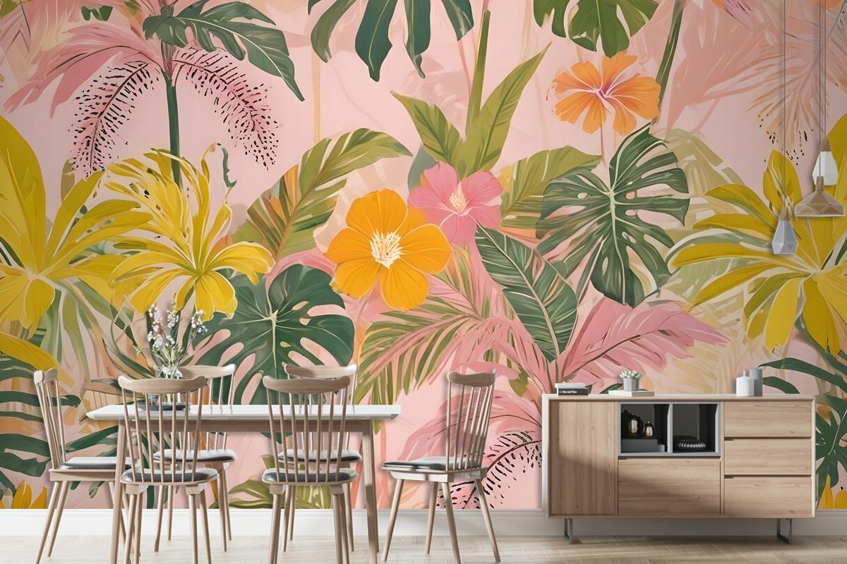 Suluboya Renkli Yaz Tropikal Yaprak Duvar Kağıdı