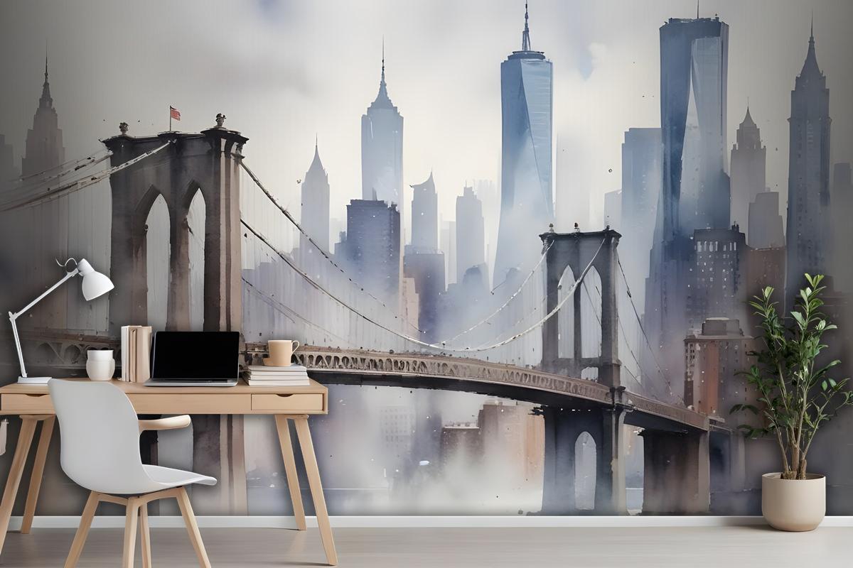 Suluboya Resim New York Şehri Manzara Duvar Kağıdı