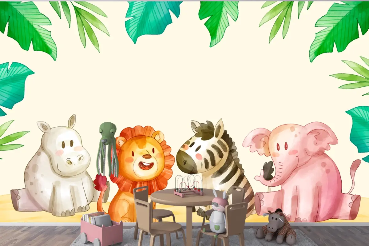 Suluboya Safari Arka Plan Çocuk Odası Duvar Kağıdı