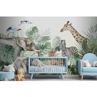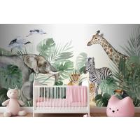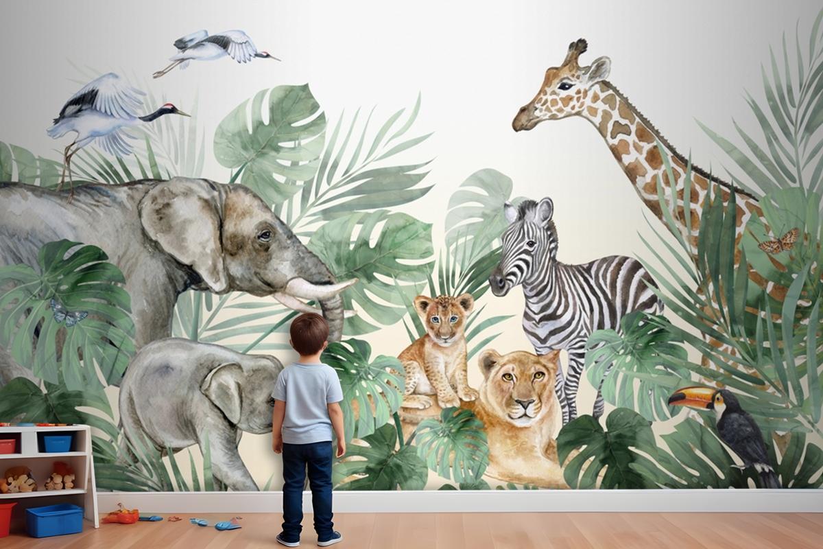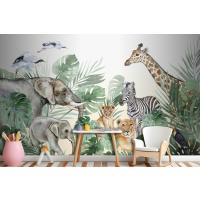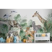 Suluboya Safari Hayvanları Çocuk Odası Duvar Kağıdı