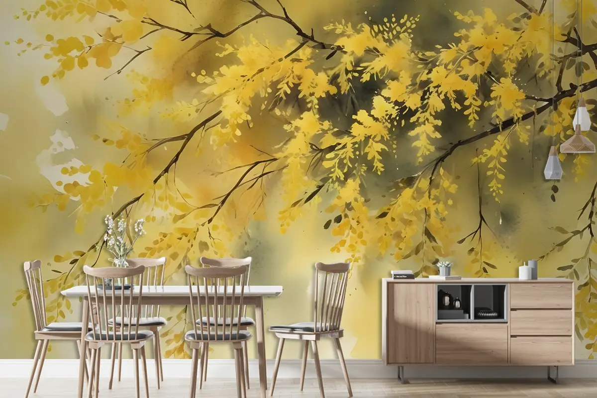 Suluboya Sarı Ağaç Manzara Duvar Kağıdı