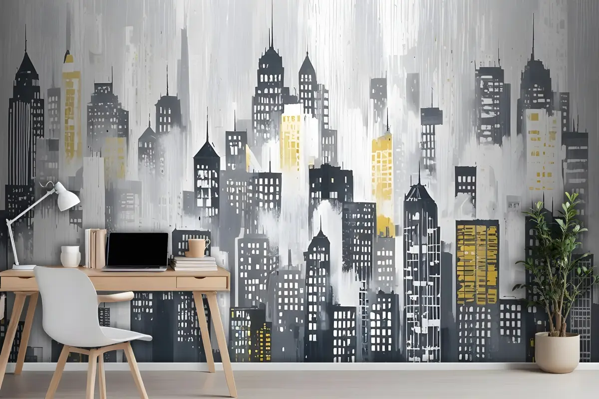 Suluboya Şehir Silueti Duvar Kağıdı