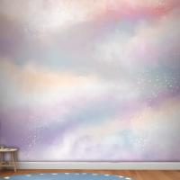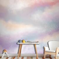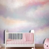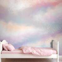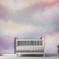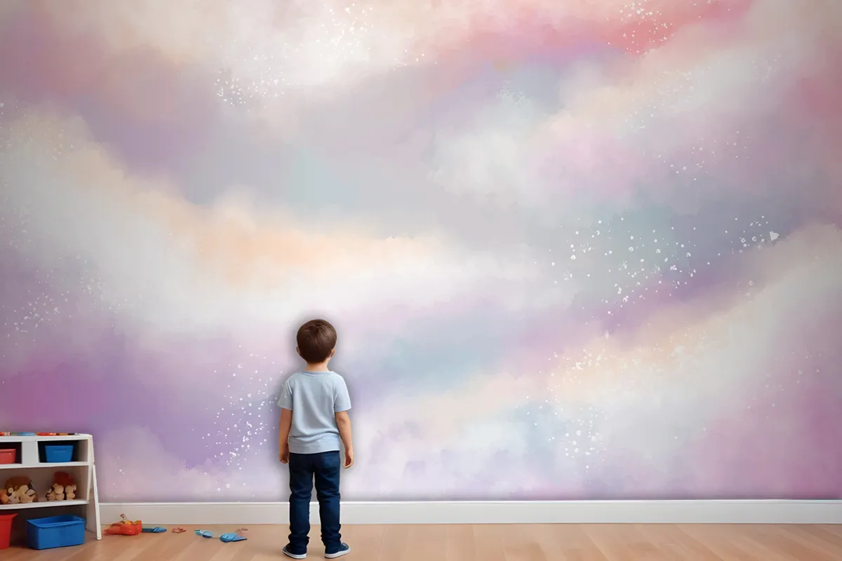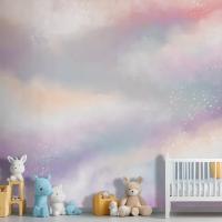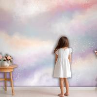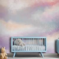 Suluboya Şeker Pamuk Bulutlar Çocuk Odası Duvar Kağıdı