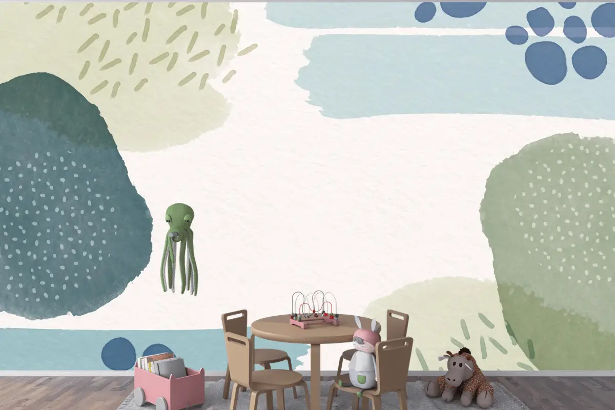 Suluboya Şekilli Ve Boş Alanlı Soyut Arka Plan Çocuk Odası Duvar Kağıdı