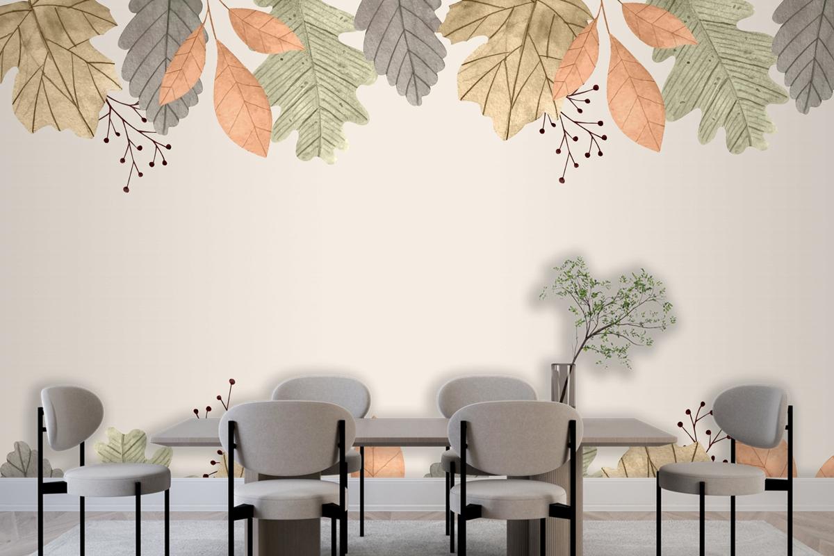 Suluboya Sonbahar Yaprakları Arka Plan Yemek Odası Duvar Kağıdı