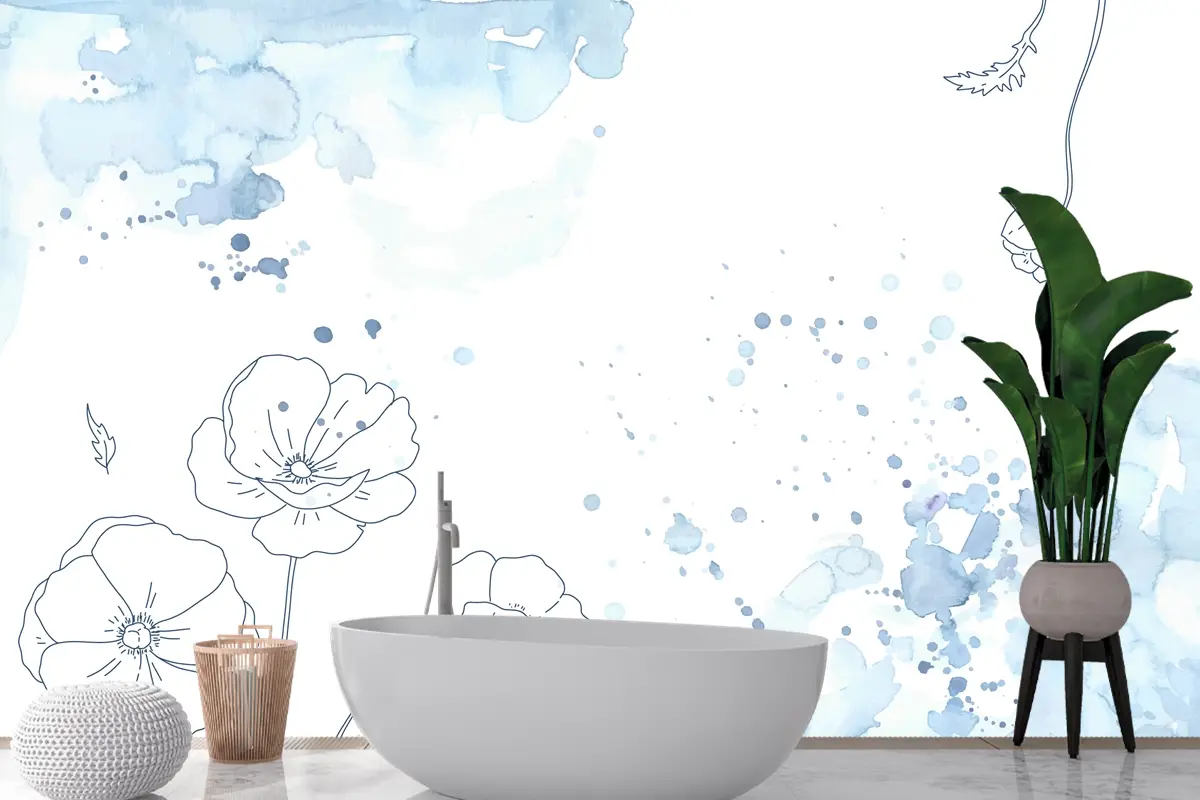 Suluboya Soyut Çiçek Banyo Duvar Kağıdı