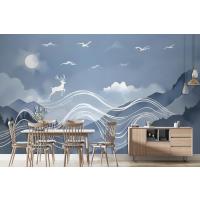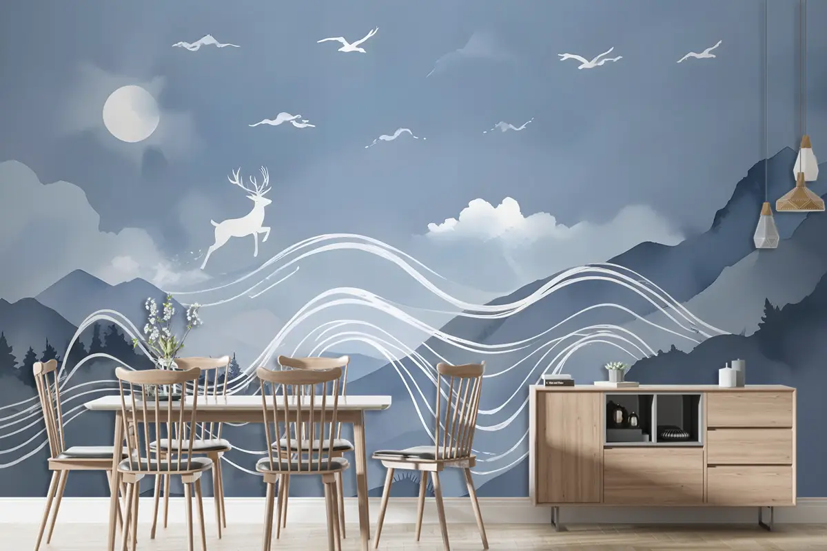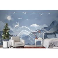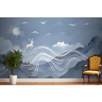 Suluboya Soyut Çizgiler Ve Boynuzlu Geyik Duvar Kağıdı