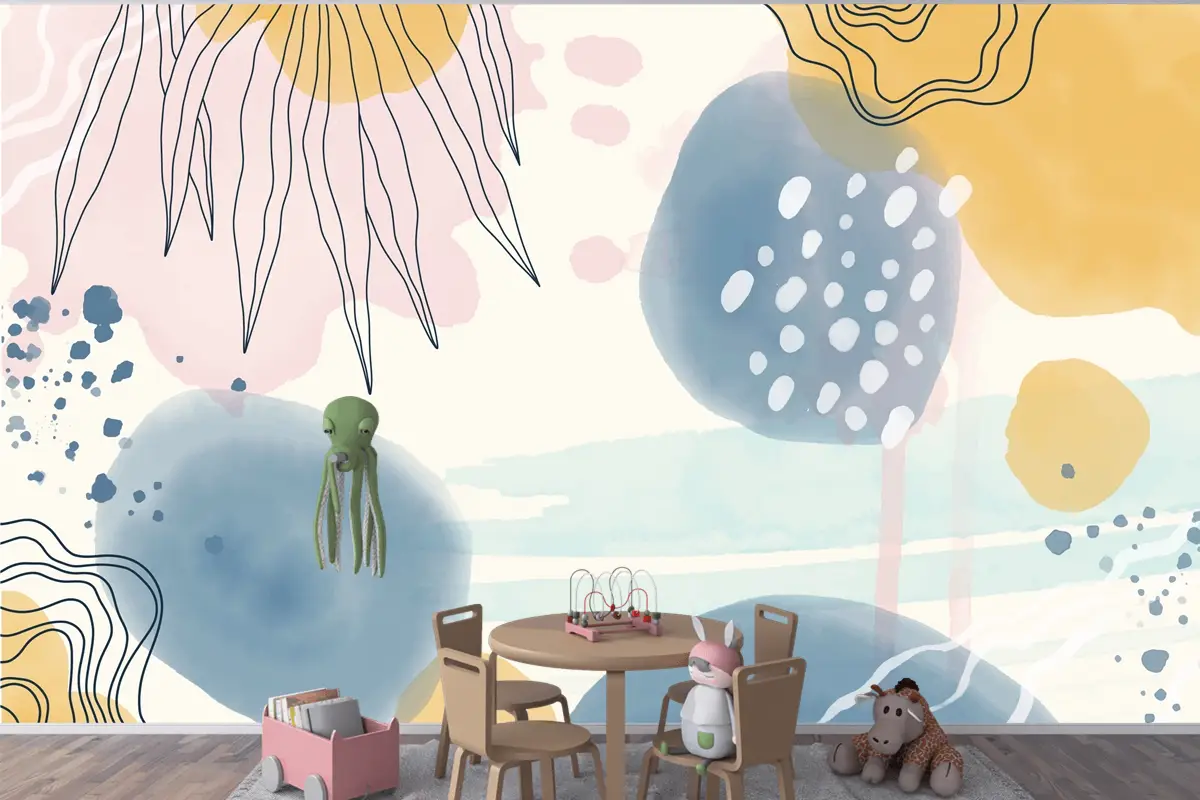 Suluboya Soyut Doodle Arka Plan Çocuk Odası Duvar Kağıdı