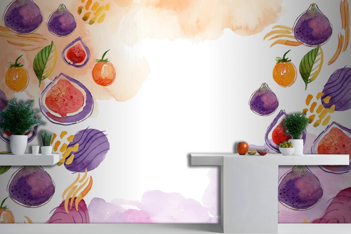 Suluboya Soyut Doodle Mutfak Duvar Kağıdı